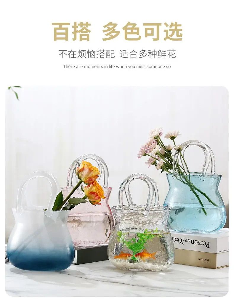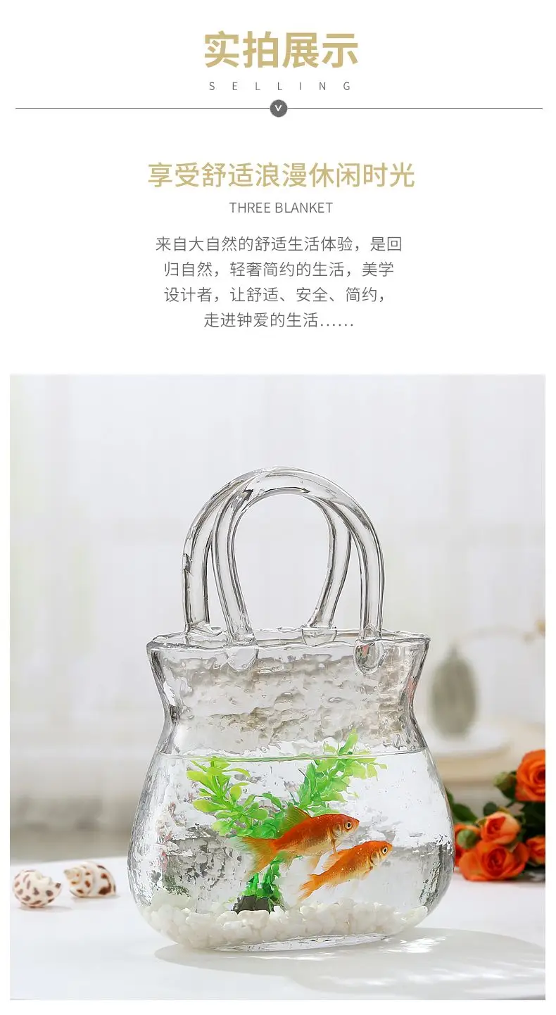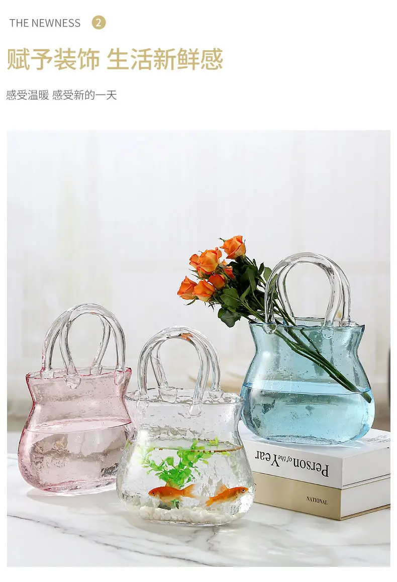 Transparent glass handbag, fish tank, vase decoration, living room flower arrangement, hydroponic decoration, fish tank decoration