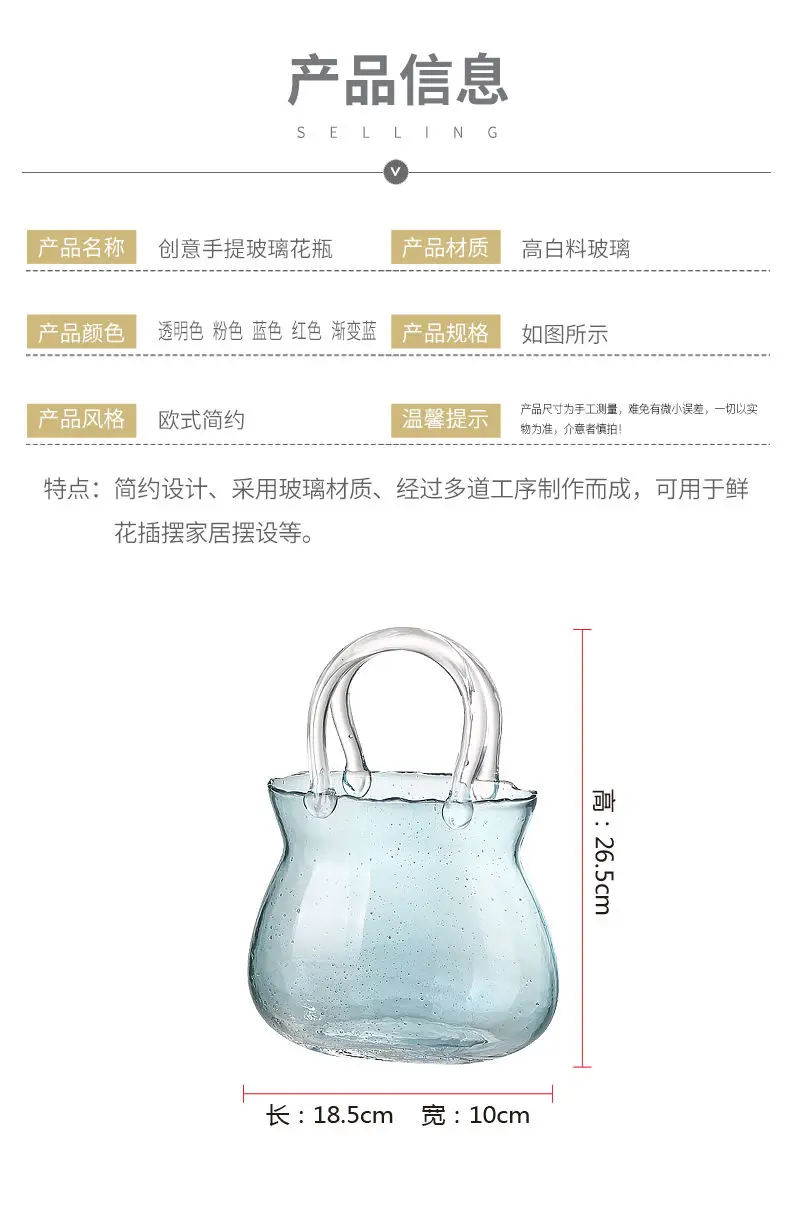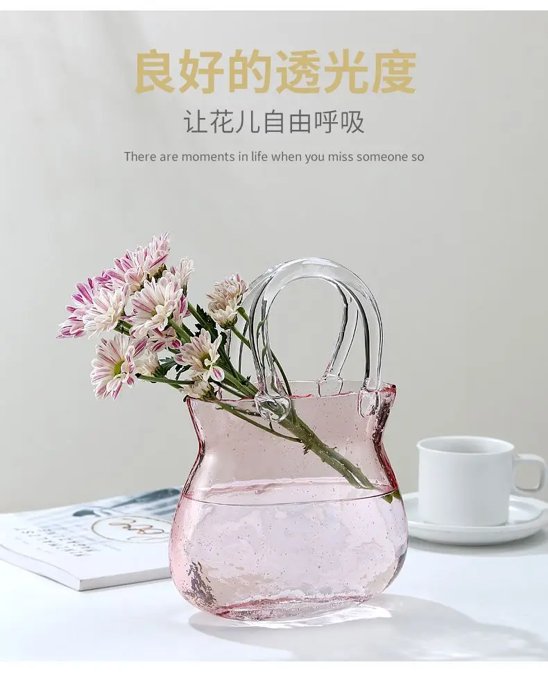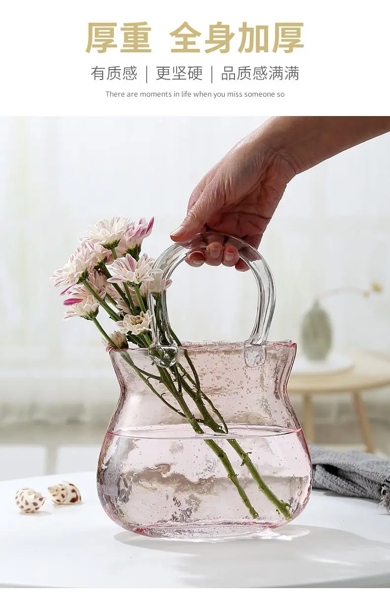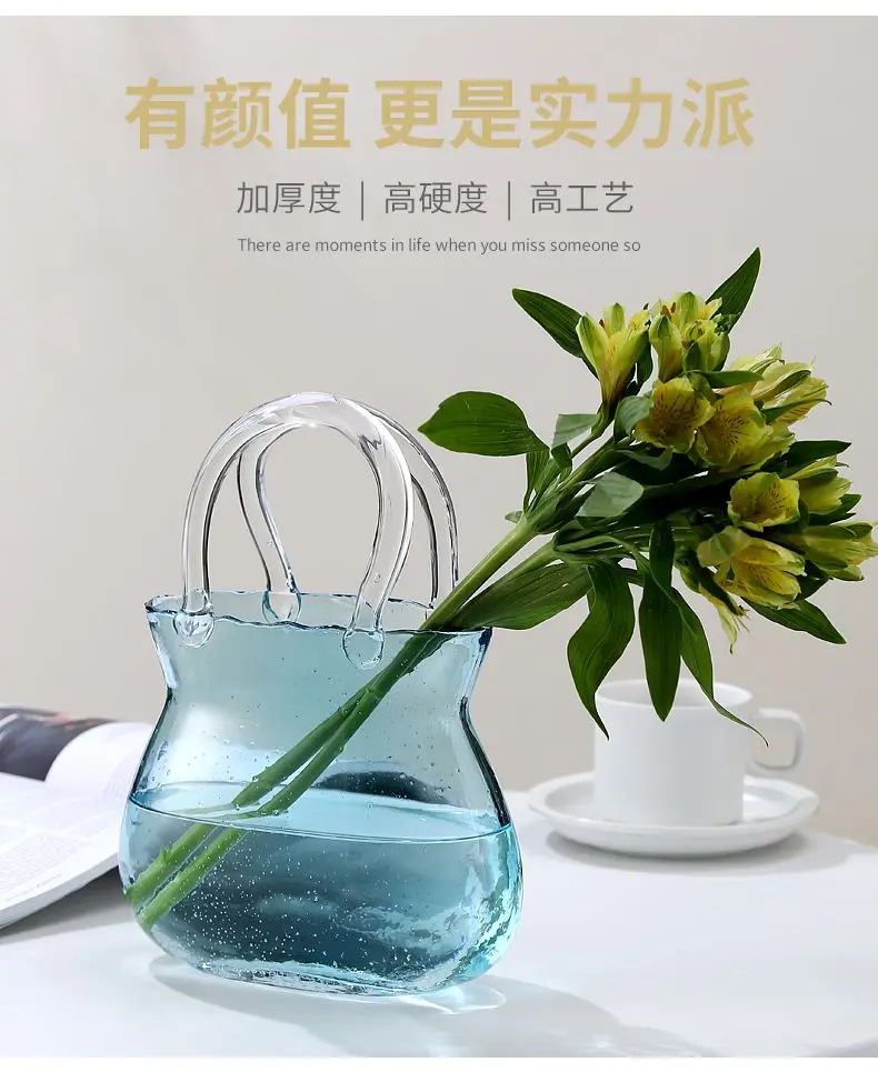 Transparent glass handbag, fish tank, vase decoration, living room flower arrangement, hydroponic decoration, fish tank decoration